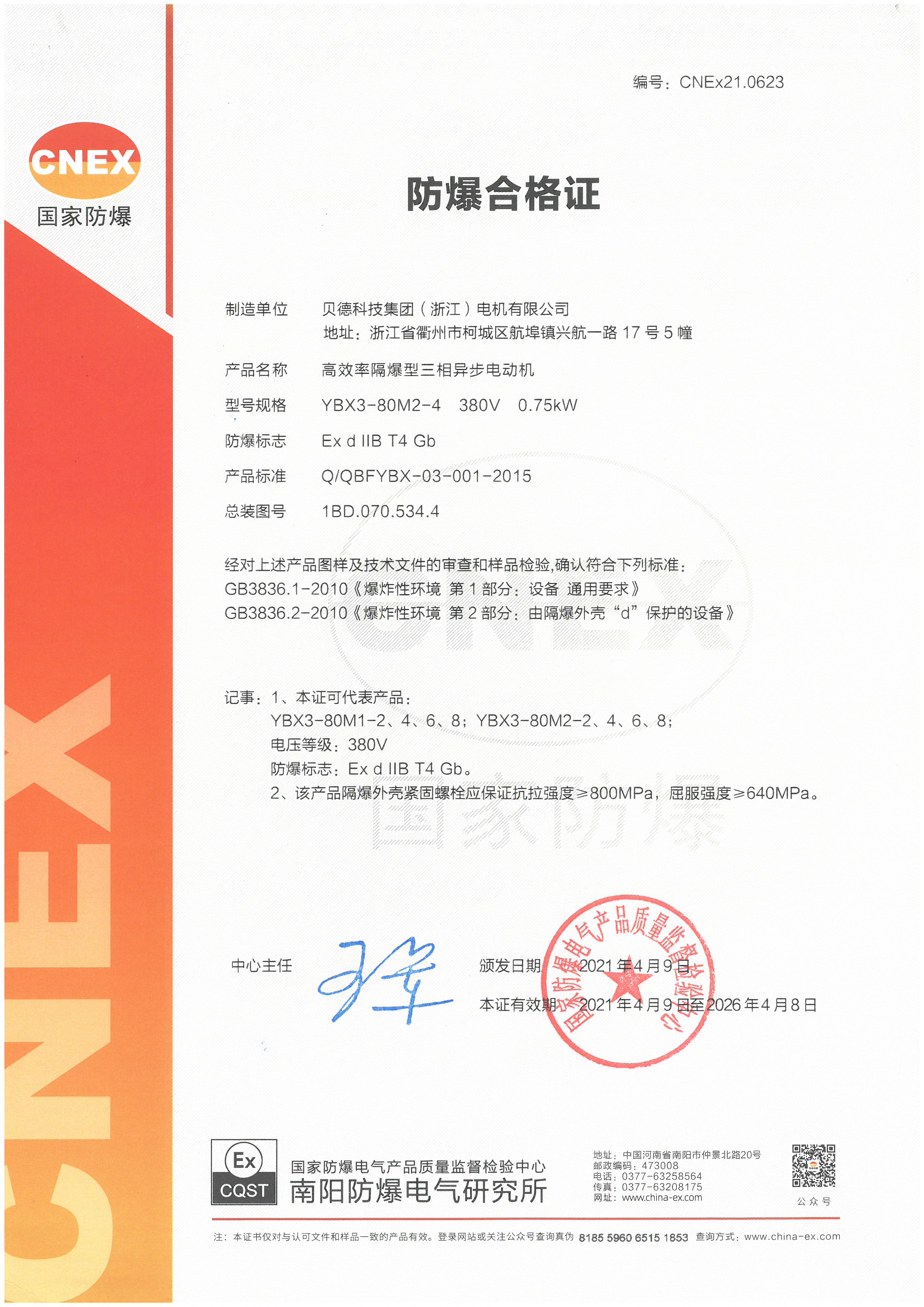 公司率先在行業內取得防爆電氣設備防爆合格證、產品認證證書、中國節能產品認證證書、中國國家強制性產品認證證書以及ISO9001質量管理體系認證證書等。