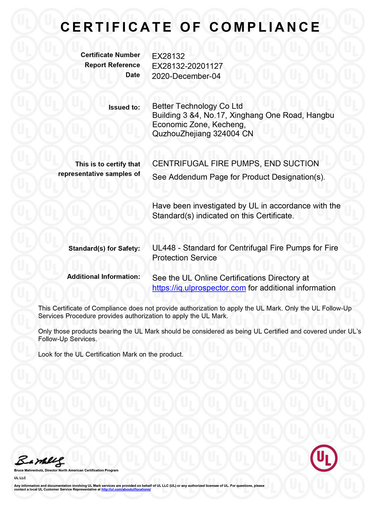 公司本著不斷開拓、精益求精的精神,始終以產品質量為重中之重,在行業中一直保持領先地位。率先通過行業尖端消防產品美標UL、歐盟CE認證,以及通過ISO9001質量管理體系、ISO14001環境管理體系認證、ISO18001職業健康安全管理體系認證。公司目前已擁有世界領先的智能水泵型式試驗檢測設備以及在線電機試驗測試系統等,優秀的產品和服務獲得了中外客戶的廣泛好評。