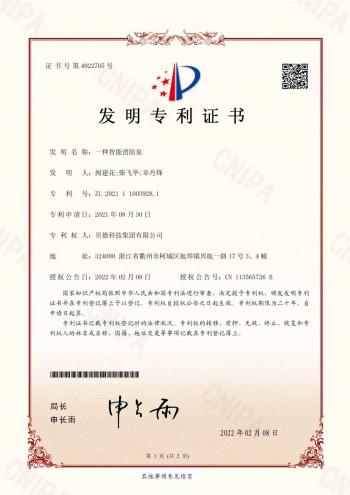 農歷虎年春節剛過,就連連傳來喜訊,公司去年6月9日和8月30日申報的兩項發明專利,歷時半年多,經過材料審查和審查員授權,智能消防泵于2022年2月8日被授予了發明專利證書,專利號為:ZL 2021 1 1003928.1;節能型變容泵于2022年2月11日被授予了發明專利證書,專利號為:ZL 2021 1 0641247.1