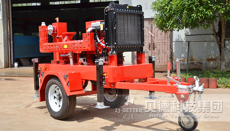 3.單級(jí)式移動(dòng)泵車是中國.貝德科技有限公司在自吸泵的基礎(chǔ)上增加了一套真空輔助裝置,縮短自吸時(shí)間,增強(qiáng)自吸高度,所以也稱為真空輔助自吸泵。
